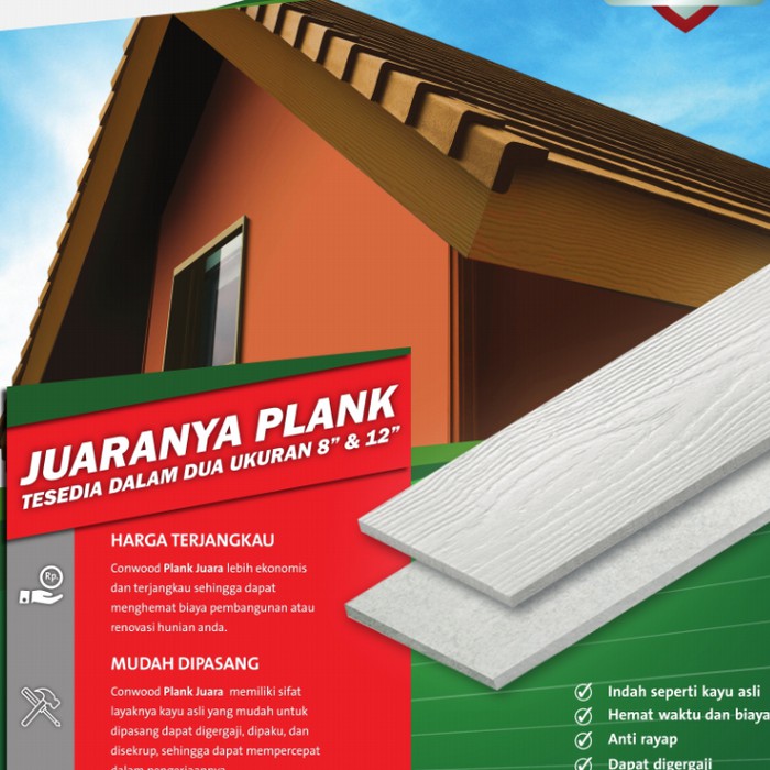 Merk kalsiplank memiliki motif permukaan seperti layaknya serat kayu, dengan ukuran tebal 1,2 cm lebar 20 dan 30 cm serta mempunyai panjang 2,4 meter sampai dengan 3 meter. Ukuran lisplang grc urat kayu lotu termurah harga paling murah. Sedangkan untuk jarak sekrup dari sisi panel minimum 15 mm. Lisplank/lisplang berfungsi untuk menutupi kaso yang terlihat berjajar di bawah susunan genteng atau bahan penutup atap lainnya.dengan ditutupi, tampilan tepi atap akan terlihat lebih rapi. Plat doff white 0,8 mm x 20 cm: